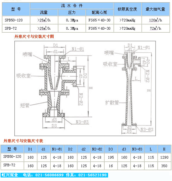 SPB型玻璃鋼水噴射真空泵SPB型玻璃鋼水噴射真空泵是一種具有抽真空、冷凝、排水等三種有效能的機(jī)械裝置。它是利用一定壓力的水流通過(guò)對(duì)稱均布成一定傾斜的噴出。聚合在一個(gè)焦點(diǎn)上,由于噴射水流速度很高,于是周圍形成負(fù)壓使器室內(nèi)產(chǎn)生真空,另外由于二次蒸氣冷凝成水,少量未被冷凝的蒸氣由與不凝結(jié)的氣體亦由于與高速噴射的水互相摩擦,混合與擠壓,通過(guò)擴(kuò)壓管被排除,使器室內(nèi)形成更高的真空。但目前生產(chǎn)水利噴射器的制造廠較小,品種亦不齊全,為此,我們近年來(lái)不斷改進(jìn)設(shè)計(jì),采用多噴咀與氣環(huán)(導(dǎo)向盤)等結(jié)構(gòu),以及用多級(jí)泵進(jìn)水,低位安裝,吸需安裝高度4.5米,完善與提高了其工作性能,具有一定的先進(jìn)性,是真空冷凝設(shè)備的一種革新。