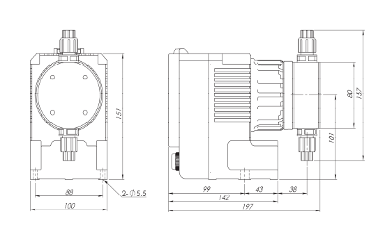 計量泵頭: 聚氯乙烯、SUS304、SUS316、聚四氟乙烯 |